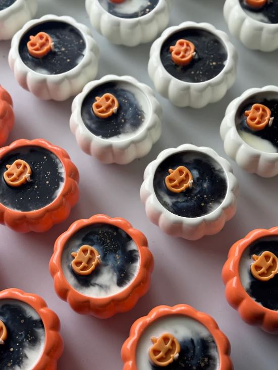 Note: The black candle dye may create a faint metallic scent on first burn — this disappears quickly, revealing the rich pumpkin aroma beneath.