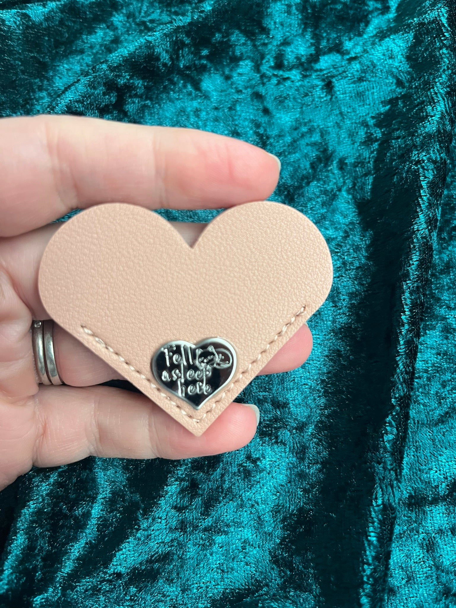 Fell Asleep Here – Heart-Shaped Leather Bookmark